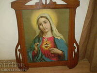 Large silver icon with wooden frame wood carving certificate