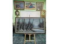 Beautiful oil painting on fiberboard, river, framed